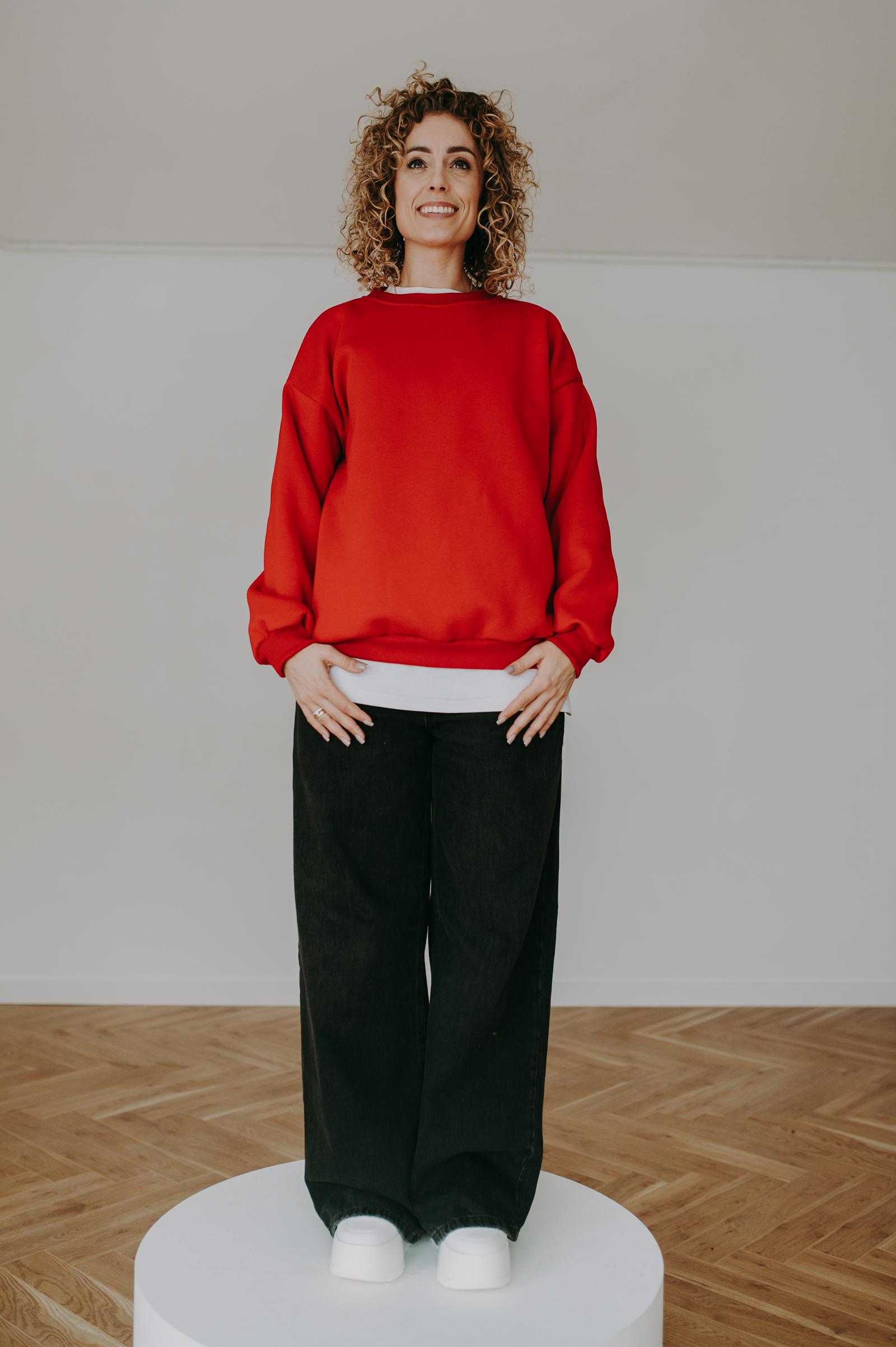Ta bluza oversize to idealna baza zarówno pod Twój projekt, jak i do codziennych stylówek. Luźny, wygodny krój daje pełną swobodę ruchów i świetnie układa się na sylwetce. To model, który pasuje do wszystkiego: od dresów po jeansy i zawsze wygląda dobrze. Uszyta w Polsce z wysokiej jakości dzianiny, która zachowuje formę nawet po wielu praniach. Miękka, trwała i komfortowa w noszeniu przez cały rok. To nie jest zwykła bluza. To baza, z której możesz stworzyć wszystko.