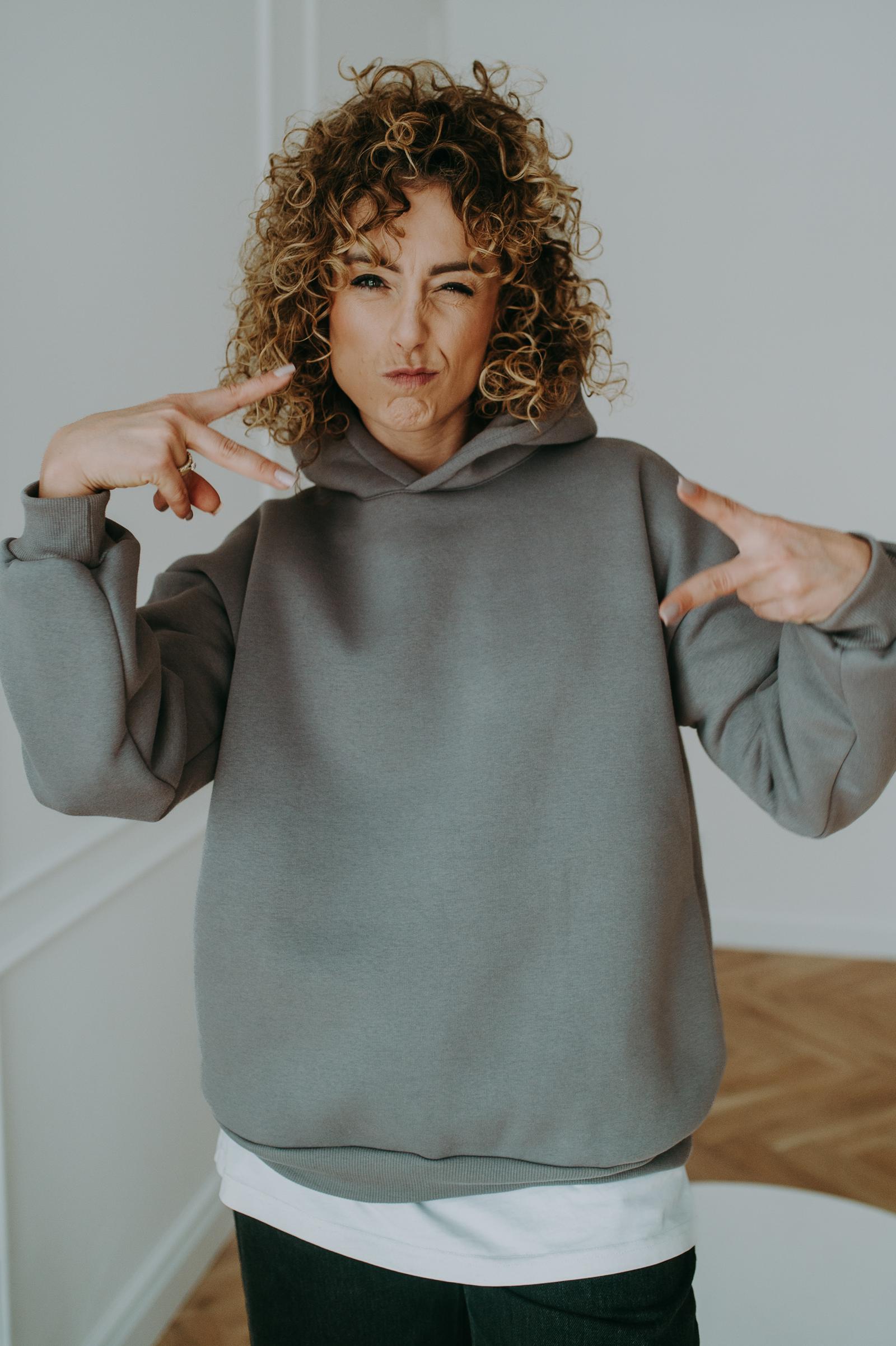 Minimalizm, który robi robotę. Bluza oversize Basic to uniwersalny model dla kobiet, mężczyzn i młodzieży, który łączy wygodę z nowoczesnym stylem. Luźny krój oversize z obniżoną linią ramion zapewnia swobodę ruchów i modny, miejski wygląd. Model został uszyty z wysokiej jakości dzianiny dresowej, przyjemnej w dotyku i trwałej w użytkowaniu. To idealna bluza na co dzień, do szkoły, pracy, na spacer czy w podróż. Możesz wybrać klasyczną wersję bez kaptura lub bardziej streetową wersję z kapturem, w zależności od stylu, który preferujesz. Bluza Basic oversize to doskonała baza do stylizacji casualowych i streetwearowych. Sprawdzi się przez cały rok jako element garderoby, który łatwo dopasujesz do jeansów, legginsów czy spodni dresowych. Modelka ma na sobie rozmiar S/M przy wzroście 172 cm.