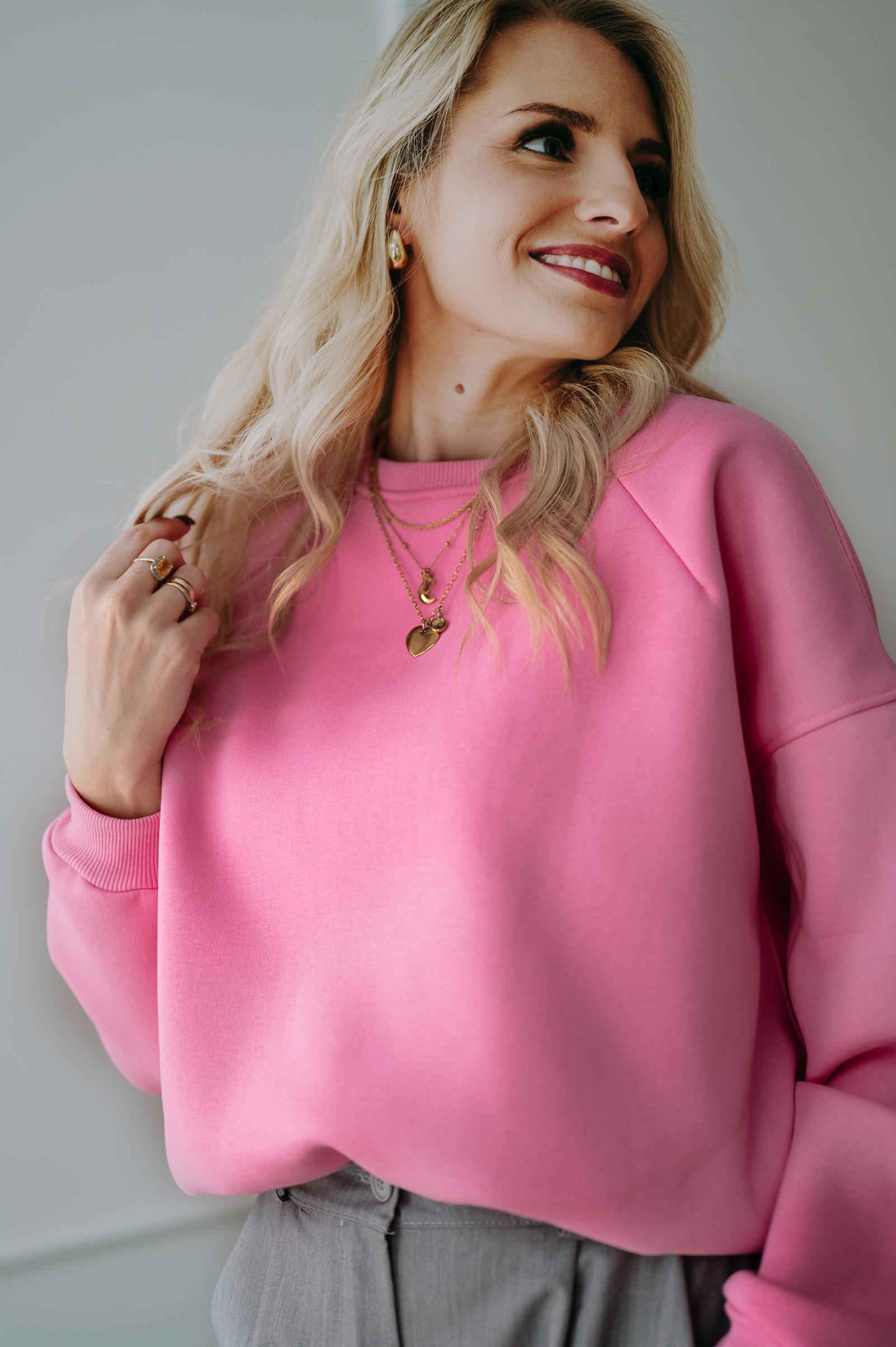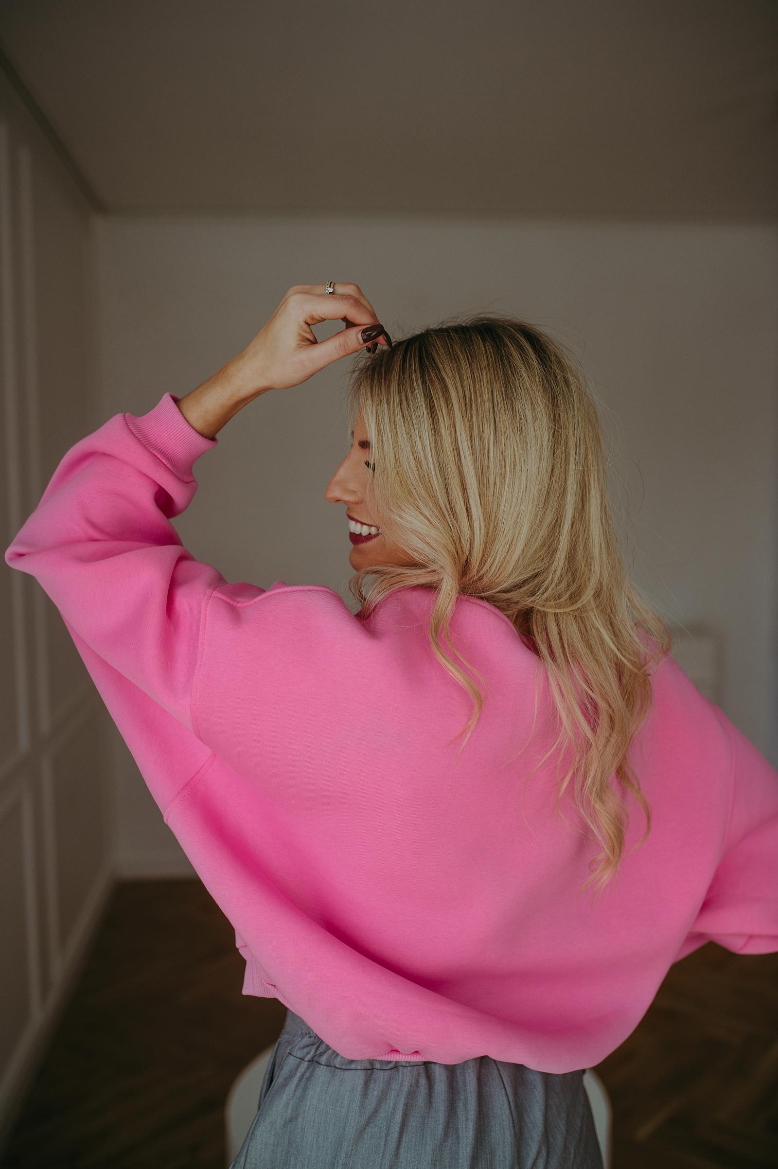 Bluza Basic oversize krótka różowa